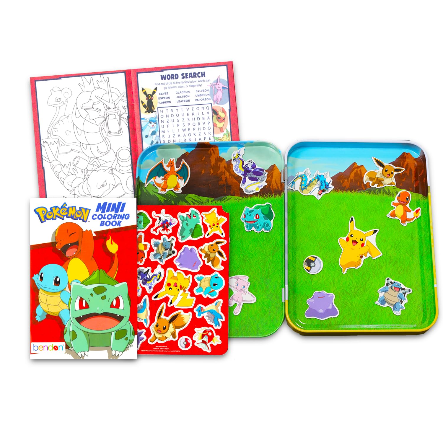 - Sure to be a hit with all Pokemon fans, this magnetic play scene set is great to give as a gift to your favorite Pokemon enthusiast. Also includes a mini Pokemon coloring book!